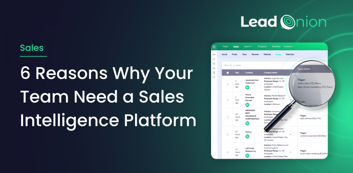 In this blog, we will explore six compelling reasons why your team needs a Sales Intelligence Platform and how Lead Onion can be the solution to your sales challenges.