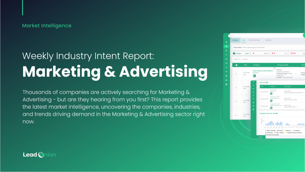 Access a breakdown of key intent signals from the 37,956 companies actively researching Marketing & Advertising solutions.