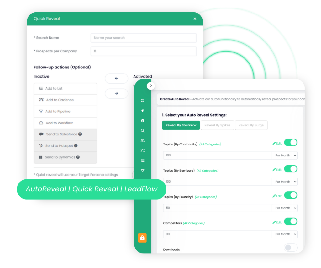 Stop searching manually – let high-intent prospects come to you. With AutoReveal, Lead Flows, and Quick Reveal, instantly uncover decision-makers the moment they show buying intent.  Whether you want a steady stream of prospects, automated lead delivery, or quick one-click reveals, our tools ensure you’re always engaging the right buyers at the right time – without the manual effort.