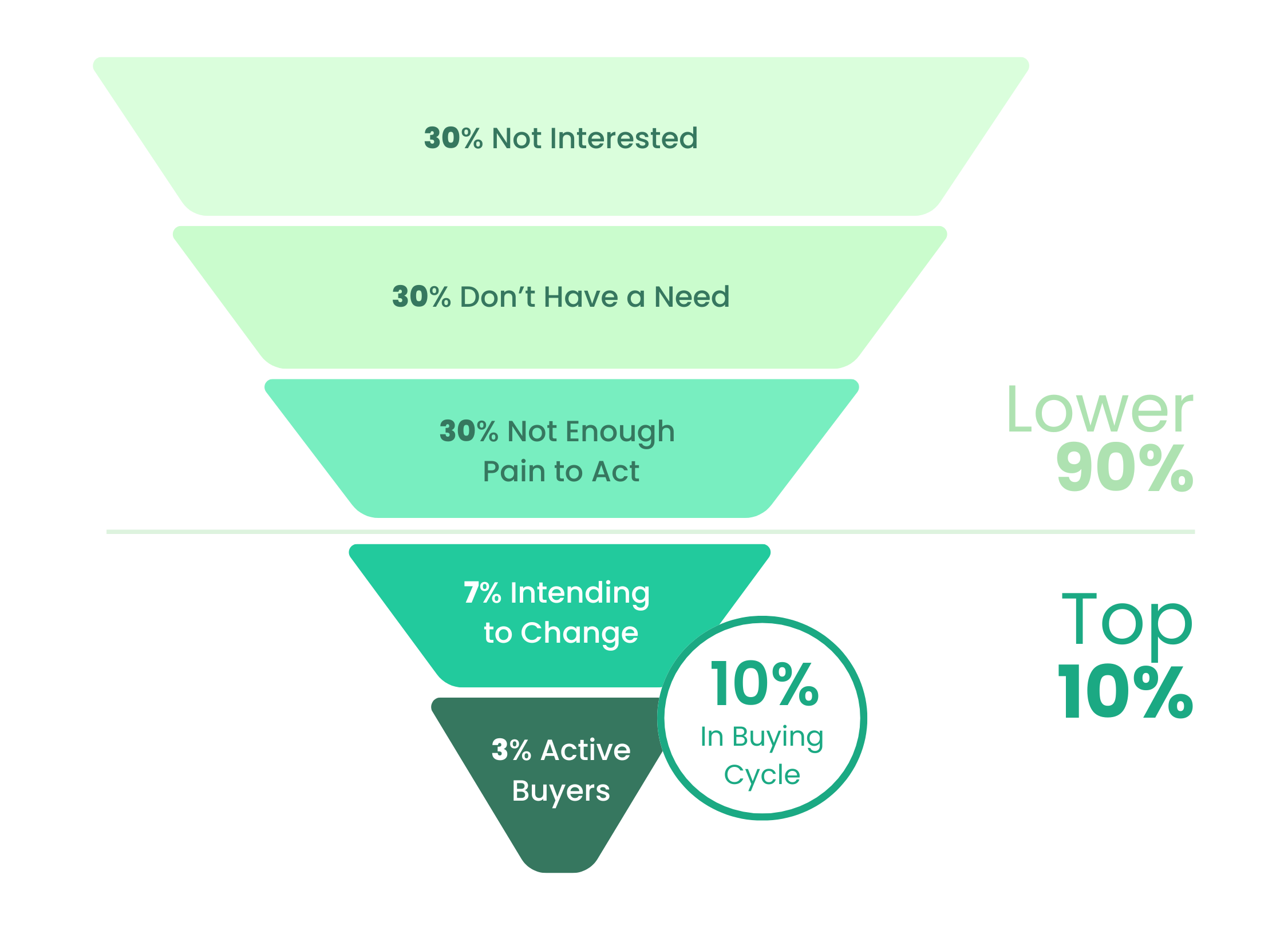 Only 10% of buyers are in market at any point in time - why waste time, effort and money on the other 90% ?