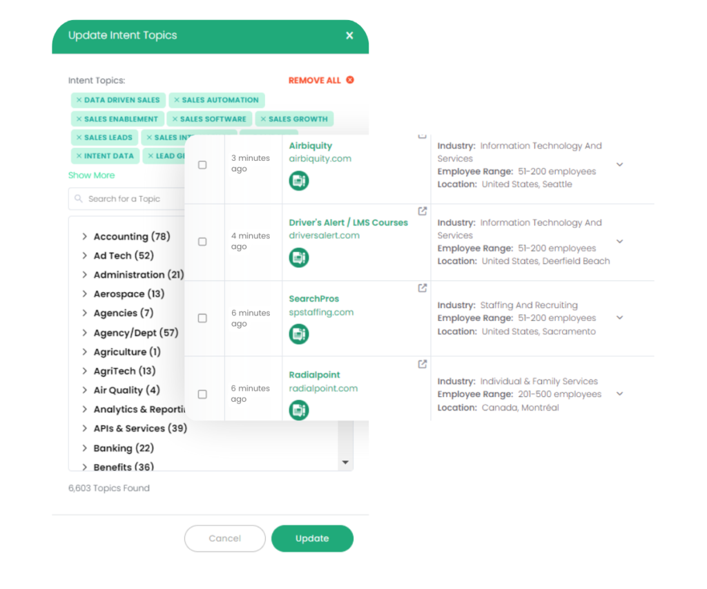 The key to effective sales engagement lies in knowing which prospects are ready to engage and when. By analyzing behavioral signals and identifying which accounts are actively exploring solutions related to your offerings, intent data enables your sales team to prioritize their efforts more strategically.