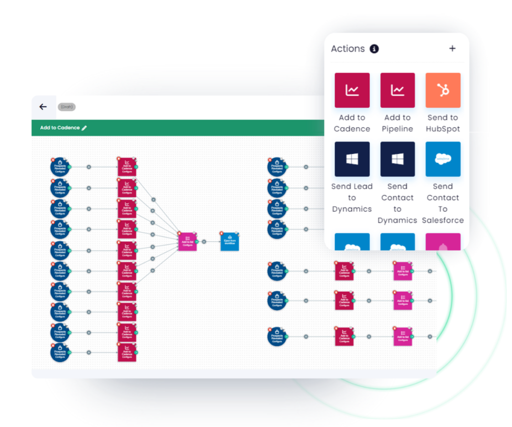 A single setup flow that creates a comprehensive buyer intent campaign, identifies targeted contacts, automates sales cadences, and jumpstarts success with 100 free leads – all within a lightning-fast, under 3-minute setup.